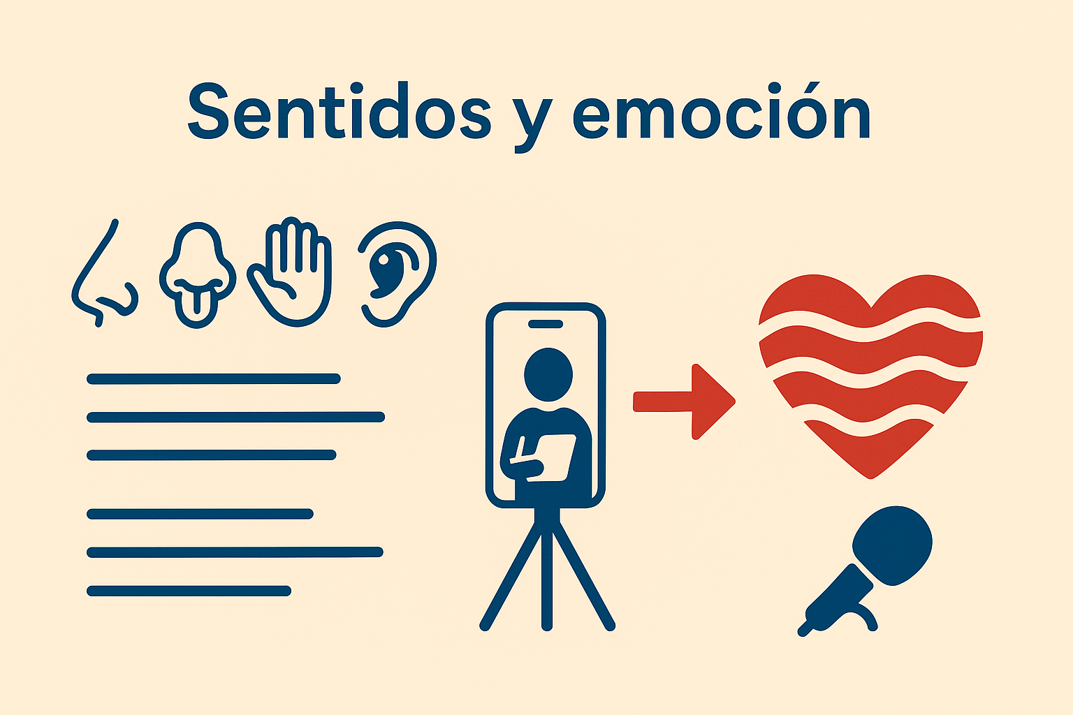 Cuando un poema se queda corto suele faltarle cuerpo: temperatura, olor, textura, peso, sonido. Esta guía te da un método sencillo para pasar de la abstracción a la imagen sensorial y 40 ejemplos listos para adaptar a tu voz: 8 por sentido (olfato, gusto, tacto, vista, oído) + 8 de sinestesia (cruces de sentidos). Además, ejercicios, errores típicos y una sesión práctica para reescribir un poema en 20 minutos sin perder el ritmo.